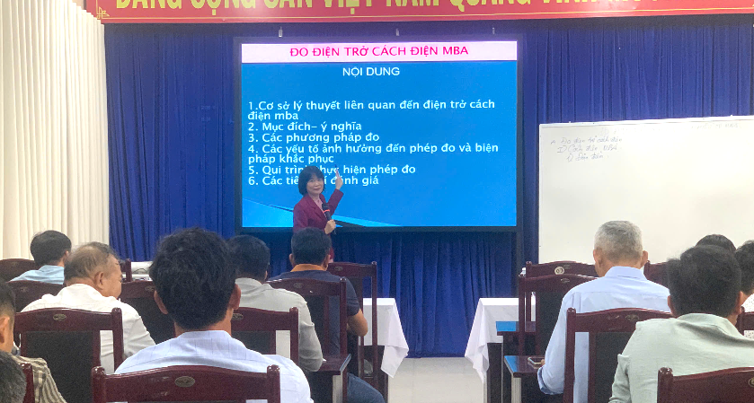 Khóa học có 10 học viên bao gồm 7 kỹ sư điện và 3 cao đẳng điện tham gia, được trang bị kiến thức về quy định kiểm định, chu kỳ và hạng mục kiểm định, tiêu chuẩn - quy chuẩn kỹ thuật, cùng quy trình thử nghiệm các thiết bị, dụng cụ điện.