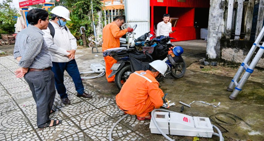Các giảng viên tại hiện trường cùng Đội quản lý điện Hội An