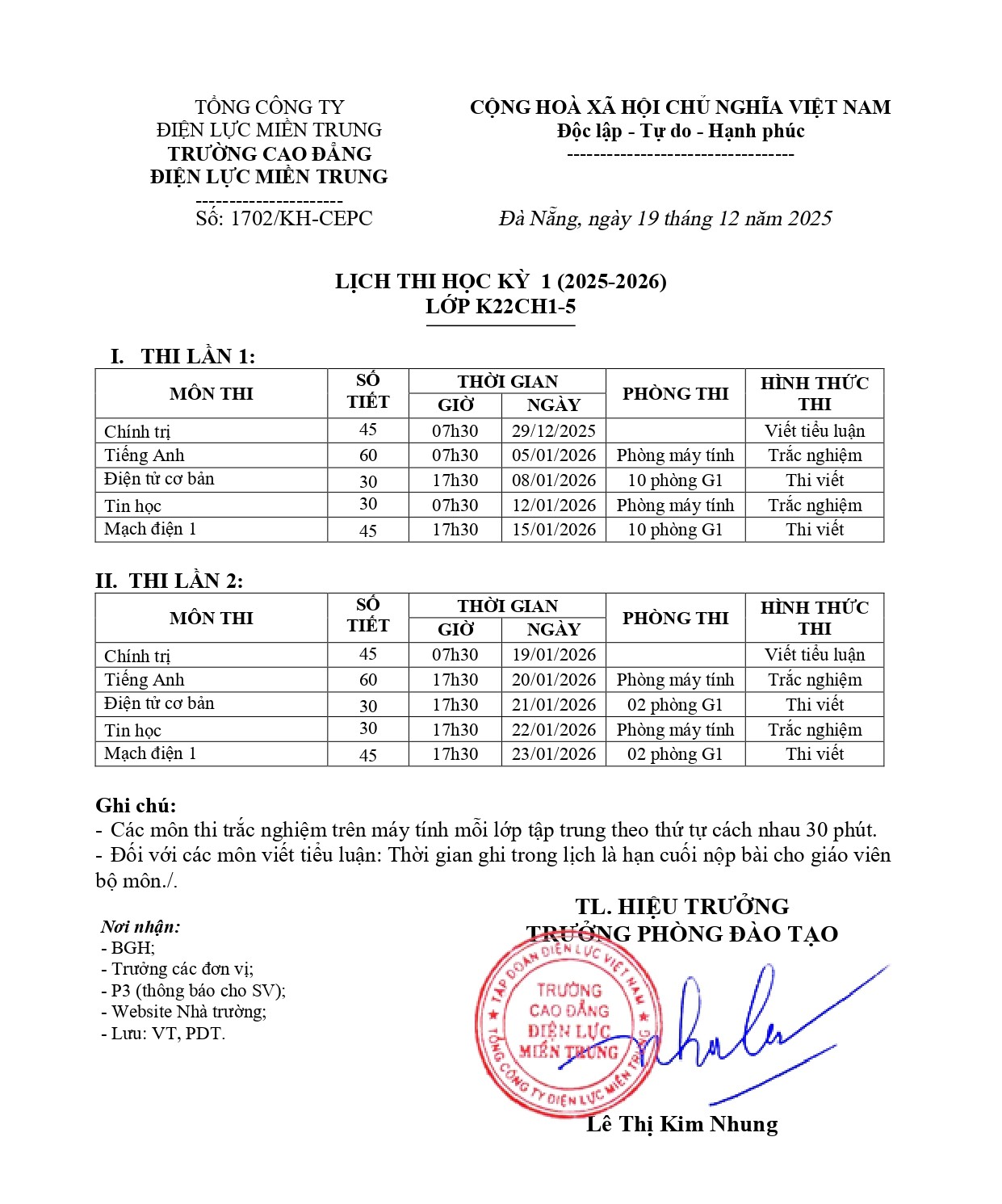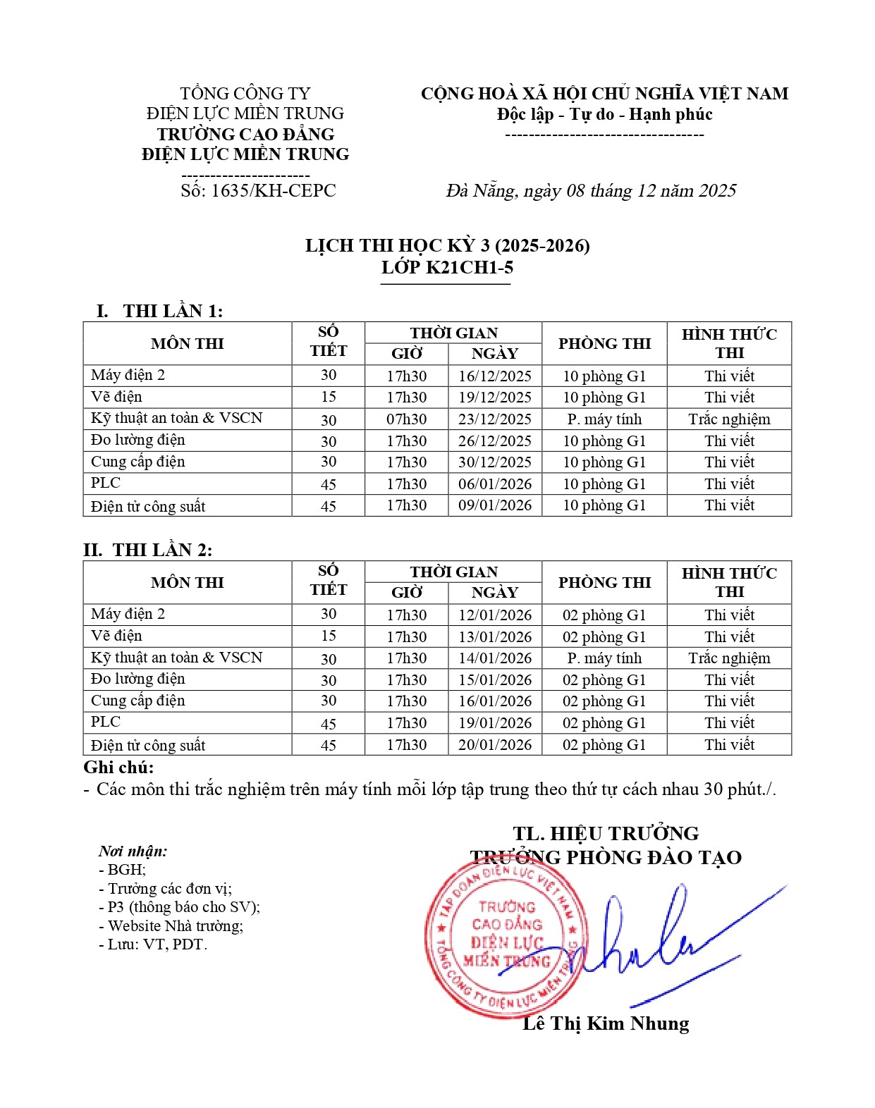 Lịch thi