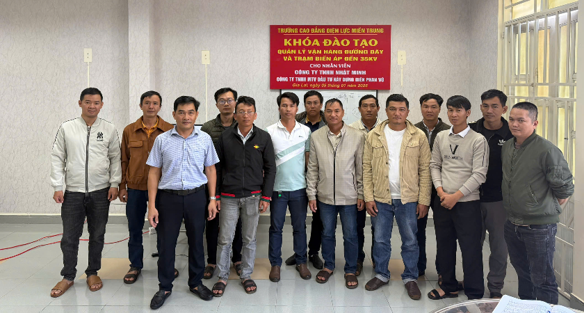 Từ ngày 05/01 đến ngày 07/01/2026, Trường Cao đẳng Điện lực miền Trung phối hợp với Công ty TNHH Xây dựng Điện Phan Vũ và Công ty TNHH Nhật Minh tổ chức khóa đào tạo “Quản lý vận hành đường dây và trạm biến áp phân phối đến 35kV” cho cán bộ, nhân viên kỹ thuật của hai Công ty.